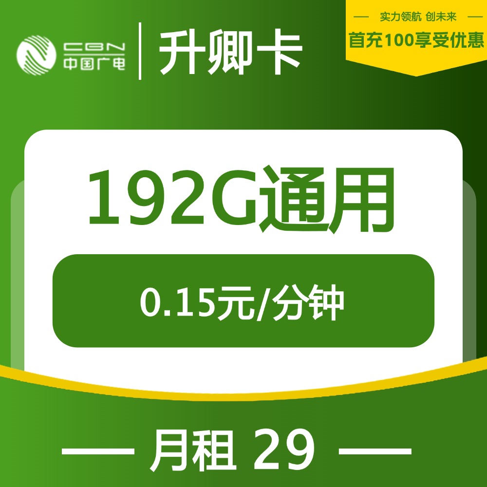 19元192G通用流量+0.15/分钟通话,(一年19版本)