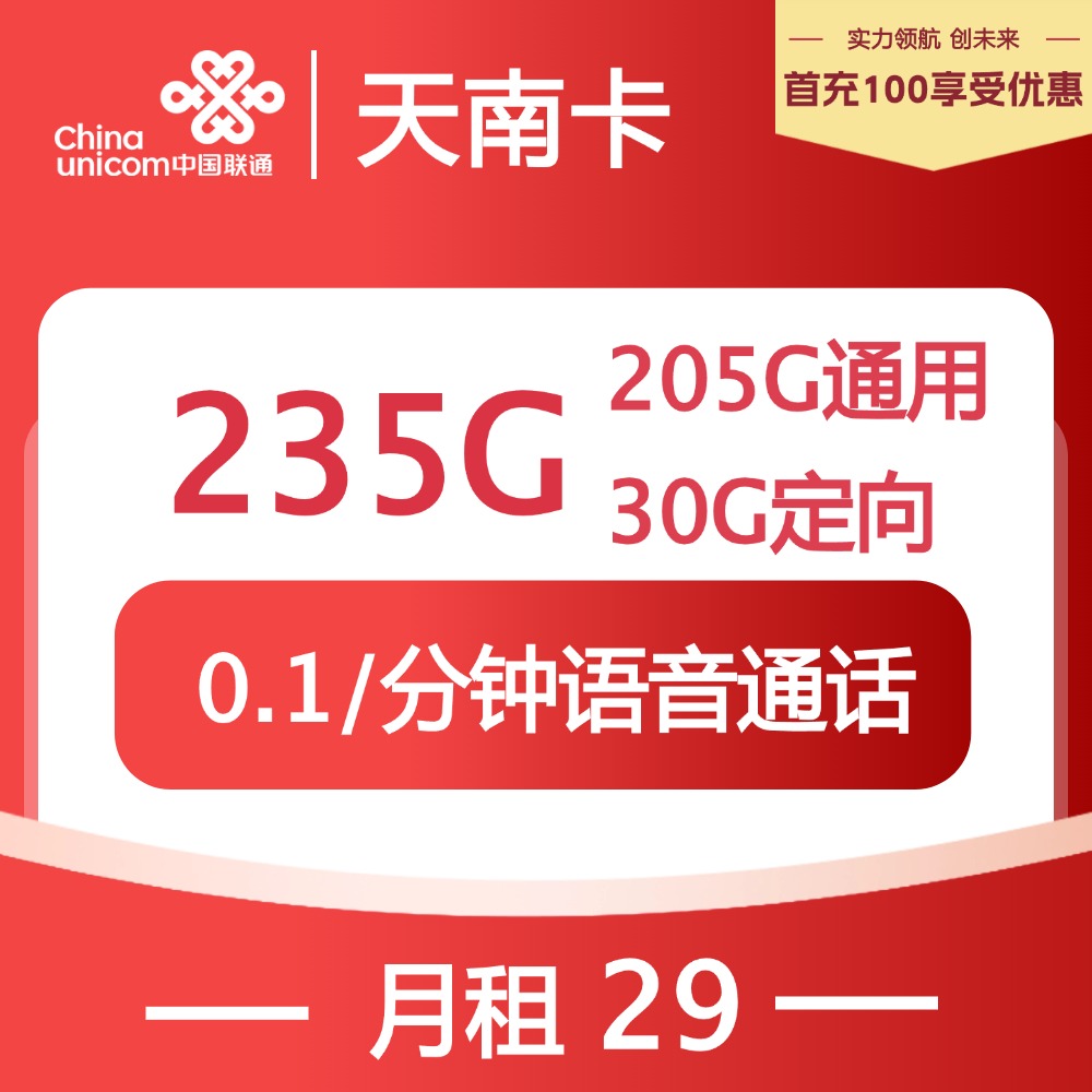 联通29元204G通用+100分钟通话-仅发安徽省内