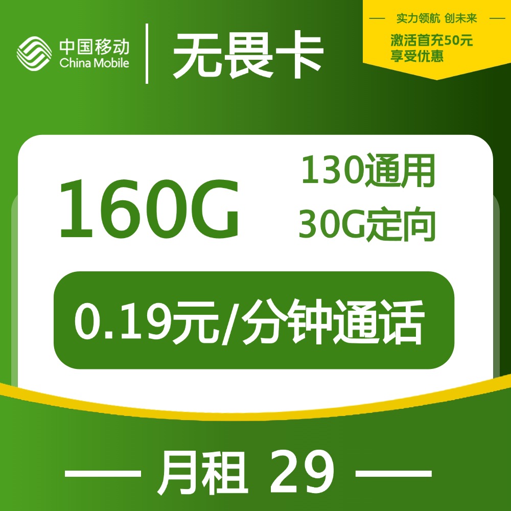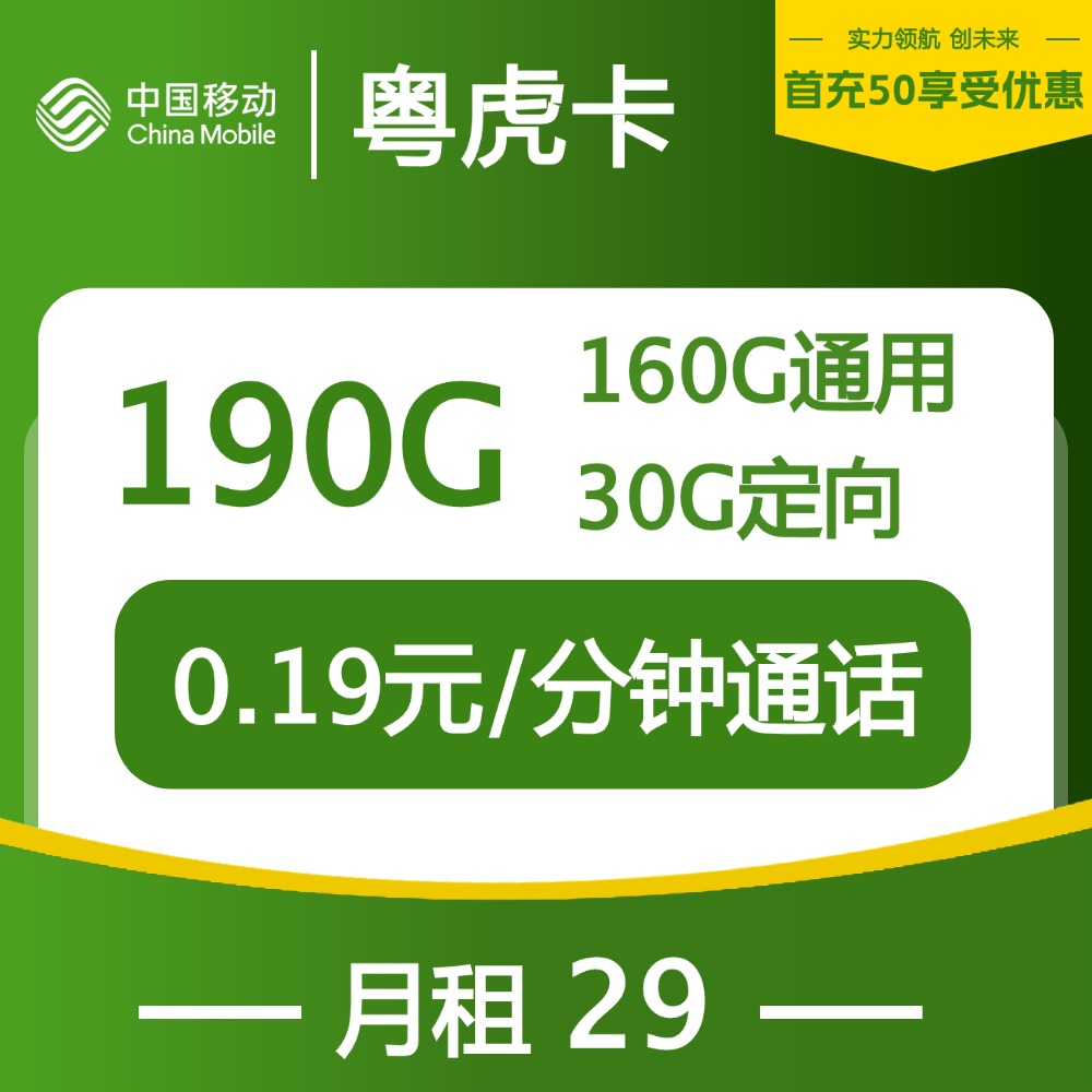 29元190G(160G通用+30G定向)+0.19元/分钟通话